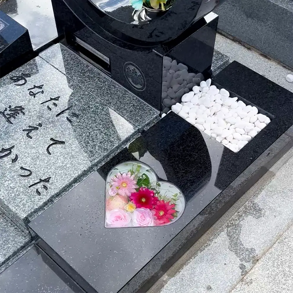 自分が思ってる以上にすごく良いお墓ができて感謝してます。昔に建てた薪石の修理等もしていただき、本当に石屋千鳥さんに頼んでよかったです。お花のオブジェもすごくお墓に合ってて見た瞬間に涙が出るくらい嬉しかったです。本当に色々と助けていただきありがとうございました。